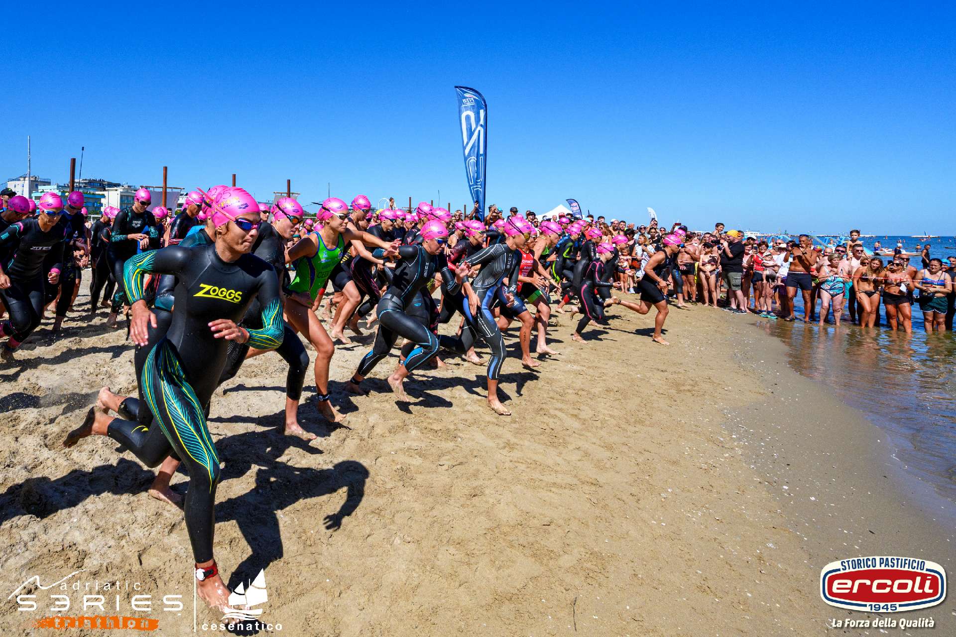 entroterra, promuovendo uno stile di vita attivo e la valorizzazione del patrimonio italiano attraverso lo sport. Adriatic Series Triathlon 2026 ha fatto tappa per la prima stagionale a Tolentino (29 marzo, duathlon sprint), quindi proseguirà il 18 e 19 aprile a Cesenatico (triathlon sprint, olimpico e AS75), il 25 e 26 aprile a Cupra Marittima (triathlon sprint, olimpico e AS75), il 17 maggio a Grottammare (triathlon sprint), il 7 giugno a Vieste (triathlon olimpico), il 12 settembre a San Mauro Mare (triathlon sprint), e si concluderà l’11 ottobre con la Grand Final di San Benedetto del Tronto (triathlon sprint).
